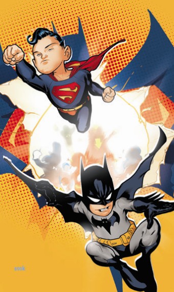 DC’s current gallery of books is hardcore, with more convoluted stories than usual. Final Crisis and it’s truck load of tie-in issues has our heroes facing their darkest day (apparently), and with Batman:R.I.P, which has the Dark Knight’s existence seemingly coming to an unexpected end, the DC Universe is not the simplest or happiest world to visit. However, they still know how to entertain and in recent months DC have given me much more mirth than usual, thanks in part to Tiny Titans, a simple book with short tales, chock-full of fanboy in-jokes. It always puts a smile on my face. Now there’s this Superman/Batman two-parter. I don’t think I’ve laughed out loud so much in a single issue. A pleasant change from last month’s issue #50, which presented a far-out tale where the parents of our titular heroes may have met decades ago, this story is just plain fun, with no need for previous knowledge. Mike Johnson continues his writing duties on this title, from last month, with Michael Green (who also writes TV’s Heroes) who launched an excellent story arc in issue #44 which had the superhero pair hunting down all of earth’s Kryptonite. During that run, Superman was exposed to some Silver K, which gave him hallucinations of pint-sized versions of his costumed friends. It was a brief, but amusing moment. Here, the kid heroes return, thanks to the reality warping powers of that troublesome imp, Mr Mxyzptlk. He confesses that his aim was simply to lighten up the superhero pair, as both heroes have been in dark times indeed as of late, just like us faithful DC readers.