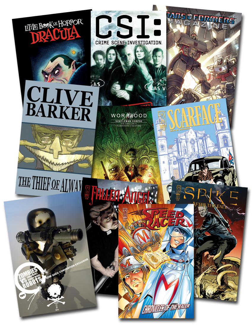IDW is offering new comics for $1 each (Reg. $3.99 cover). Titles include — subject to availability — 30 Days of Night, Transformers, Star Trek, Wormwood, Spike, Fallen Angel, Dr. Who, Scarface, Gene Simmons, Metal Gear Solid, Clive Barker, Zombies vs. Robots, and CSI.