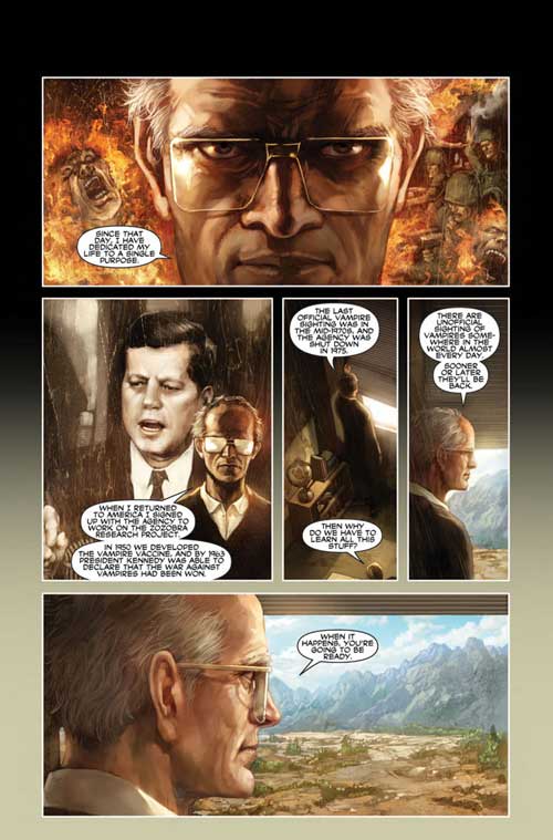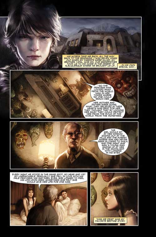 It’s not all bad though; far from it in fact. Burns does the best with the few pages he’s given, but the concept from publisher Ricardo A. Villa needs fleshing out. It’s actually a strong start and has a lot of potential, but it demands a mini-series, rather than 112 pages. The art by Joe Eisma reminds me of 90’s Green Arrow penciller Rodolfo DiMaggio (who is now doing illustrations for big films BTW). It’s crisp and natural, with few lines. He handles emotions and body language with a natural fluidity and brings a quiet grace to each page. It’s all quite pleasant on the eye, and the spot on colouring by Giuseppe Pica sells each scene.