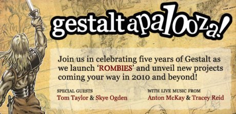 Some may think there’s not  a lot of fanboy/girl activity in the city in which I dwell. Sure, Perth is the most isolated city in the world, but we have a high percentage of comic book lovers. The new Supanova Pop Culture Exhibition is doing well, with its 3rd year coming in a few months, plus 24 Hour Comic Book Day, and even a few local lads done good (Ben Templesmith, Ashley Wood and Shane McCarthy spring to mind). All this serves as a reminder that creativity and curiosity can flourish anywhere.  Now, local publisher Gestalt has reached its 5th year of operations. That’s an impressive stint and certainly worth celebrating, so they are! February  18th at 7pm at Clancy’s Fish Pub in Applecross, Western Australia is the place to be. I’ll certainly be there (but please come anyway). Gestalt will be launching their new book Rombies, with its creative duo in tow, writer Tom Taylor (Star Wars: Invasion) and artist Skye Ogden (Gestalt’s Vowels).There’ll also be live music and the chance to hobnob it with the creative elite.