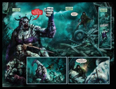 Creator Nick Percival does a superb job of teasing the world he’s created. The OGN will show us darker versions of Hansel, Gretel, Goldilocks and Humpty Dumpty amongst others, and this #0 issue is a great introduction –and it’s only $1! This is a grisly world filled with bionics and mechanics as much as grotesque creatures and medieval brutality. Sure, not a lot happens here, but Radical are obviously confident that Legends will find a greater readership and if nothing else Percival’s tale is the mark of a future talent to keep your eyes upon. There’s a richness to his painting style that Radical readers would be familiar with and a boldness to the way he approaches each page. He lets each scene breathe, and though it’s obvious he’s bursting at the seams with mad ideas, he’s in no rush to tell a complete story here. There will be plenty of time for that come April, and I for one am looking to visit this crazy world then.