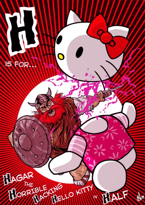 Now here’s the perfect way to teach your kids the alphabet and pop culture at the same time. Courtesy of artist Neill Cameron you can view 26 renditions of awesomeness, such as, “F is for The Fantastic Four saving the Finnish ambassador from Fred Flintstone, who’s flinging flaming fajitas at his Ford Fiesta,” or the much simpler, “U is for Uhura and Ultraman on a unicorn underwater.” Hilarious, absurd and educational. See the whole alphabet here and check out Cameron’s site here.