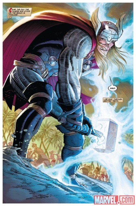 Marvel is proud to unveil your first look at Iron Man/Thor, Marvel’s hotly anticipated Free Comic Book Day (May 1st) special from award-winning creators Matt Fraction and John Romita Jr. With the Heroic Age in full swing, Iron Man and Thor find themselves pitted against an enemy unlike any they’ve fought before! And, don’t forget, Iron Man/Thor is totally free this Saturday in celebration of Free Comic Book Dayat your local comic retailer!