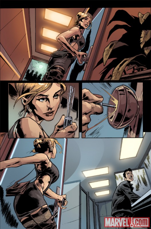 As much as Remender’s bloody fingerprints are all over this book, so are those of Tocchini. This is a series whose visual approach is as daring as its story. Tocchini’s pages could almost be the work of a team of artists, with inking, colouring and page layouts being a work of perfect tandem. He somehow manages to give scenes of flying fingers and bullet wounds an air of light-filled delicacy, maintaining an effective balance between dazzling beauty and bludgeoning brutality.