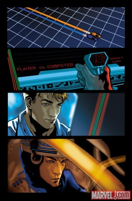 Marvel is pleased to present your first look at Tron: Original Movie Adaptation #1, from acclaimed author Peter David and rising star artist Mirco Pierfederici along with covers by Greg Land and a stunning variant cover by Salvador Larocca! In anticipation of Walt Disney Pictures’ 3D high-tech adventure, TRON: LEGACY, in theaters on Dec. 17, 2010, Marvel Comics is proud to bring to you a stunning new visualization of the original TRON film. Learn the secrets of the Tron Universe. Discover its cast of dynamic characters. Witness the events of the legendary film in an all-new comic event with Tron: Original Movie Adaptation #1!