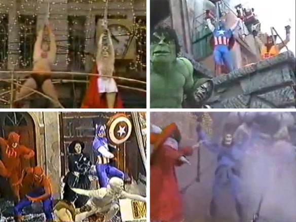 Oh, what joys YouTube has the power to unearth, and thanks to all those people that never throw out old VHS tapes. Comics Alliance has a great post, with 4 videos from the mid to late ’80s Macy’s Thanksgiving Day Parade. See He-Man and She-Ra fail synchronised movement! Gasp as Captain America plays hide and seek with some bad guys! Wonder why the Back to the Future theme music is played! Dance along with Doctor Doom to a Bonnie Tyler song! Yep, they’re definitely worth watching and are equal parts hilarious and cringe worthy. I feel sorry for the badly dressed actors under the lycra too, but I know if I was a kid watching such a spectacle, I would’ve screamed with excitement. At least we know that next year’s Batman stage show and Spider-Man musical will be better than this.