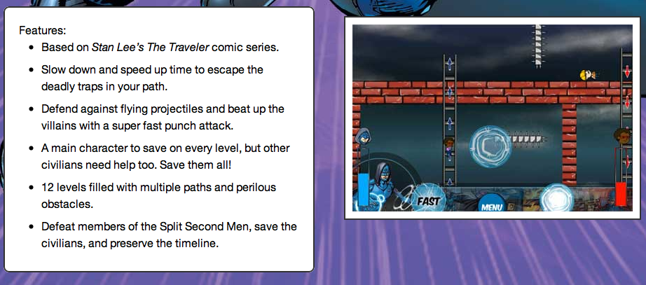 Alongside the much anticipated release of the time-bending superhero saga STAN LEE’S THE TRAVELER #1, comes the debut of STAN LEE’S THE TRAVELER in SPLIT-SECOND MAYHEM available now in the iTunes store for the iPhone & iPod Touch and brought to you by Stan Lee, BOOM! Studios, GameSalad, and D7!