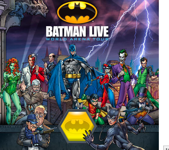 For the first time in DC Comics history, see Batman the world’s most popular DC Super Hero as you’ve never seen him before, in an all-new, live-action arena adventure, set to take the world by storm. Premiering in the UK in Summer 2011,Batman Live – World Arena Tour is a multi-million pound stage production of unprecedented scale and a must-see for families and Batman fans everywhere.