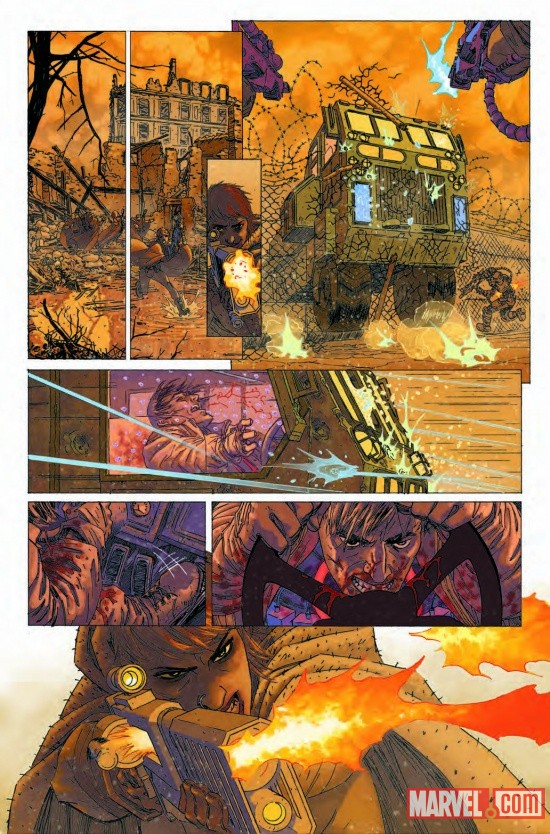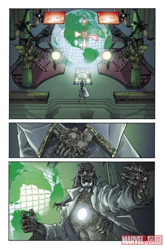 Marvel is pleased to present your first look at the landmark anniversary issue, Invincible Iron Man #500! From the Eisner Award winning creative team of writer Matt Fraction and artist Salvador Larroca– along with special guest-artists Kano, Nathan Fox and Carmine Di Giandiomenico– the Armored Avenger’s past, present and future come together for a mind-bending tale that brings together three generations of Starks! Is Tony Stark the man responsible for the dystopian world of tomorrow? Is his son really the relentless mass murderer known as War Machine? What awful fate awaits his freedom-fighting granddaughter as she slips into the clutches of the Emperor of the Earth, the vaunted Grand Khan…the Lord Mandarin?!