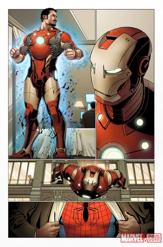 The answers lie inside the mind of the Tony of today and it’ll take the matched wits of both Iron Man and the Amazing Spider-Man to extract them! Prepare for a pulse-pounding paradigm shift as “The New Iron Age” blasts open a new chapter in the history of a Marvel icon this January, only in Invincible Iron Man #500!