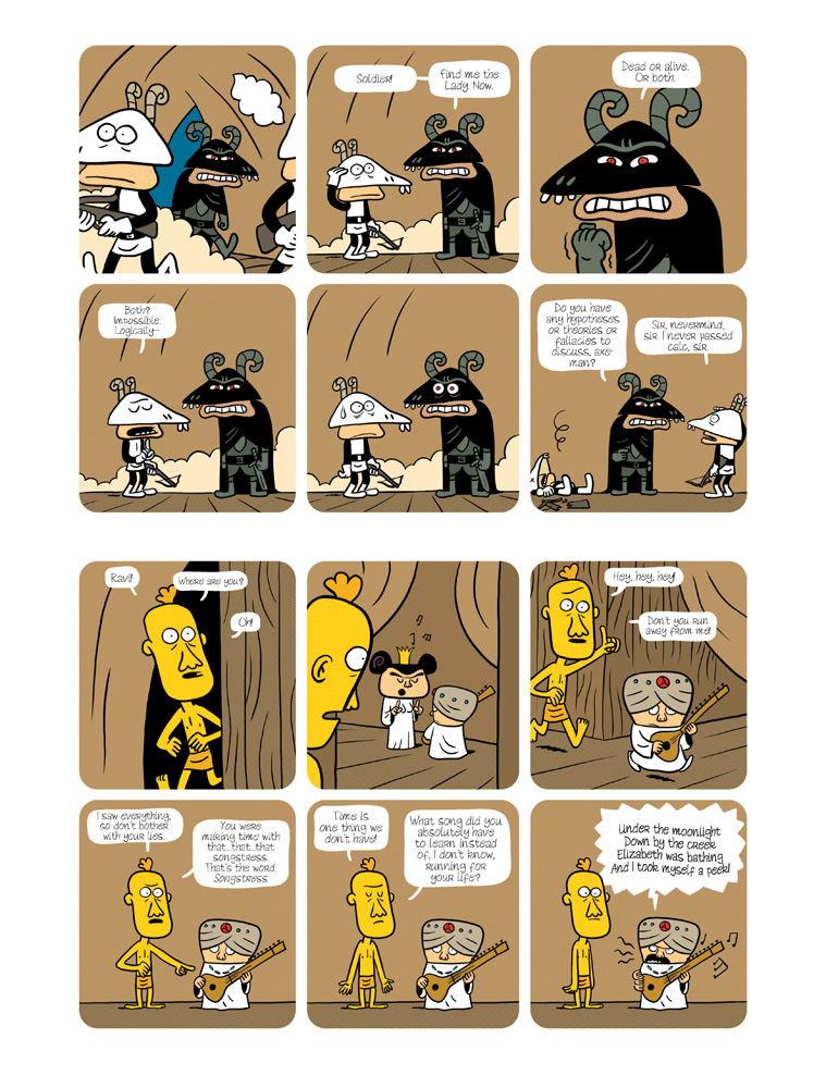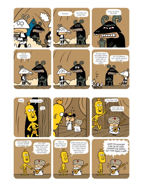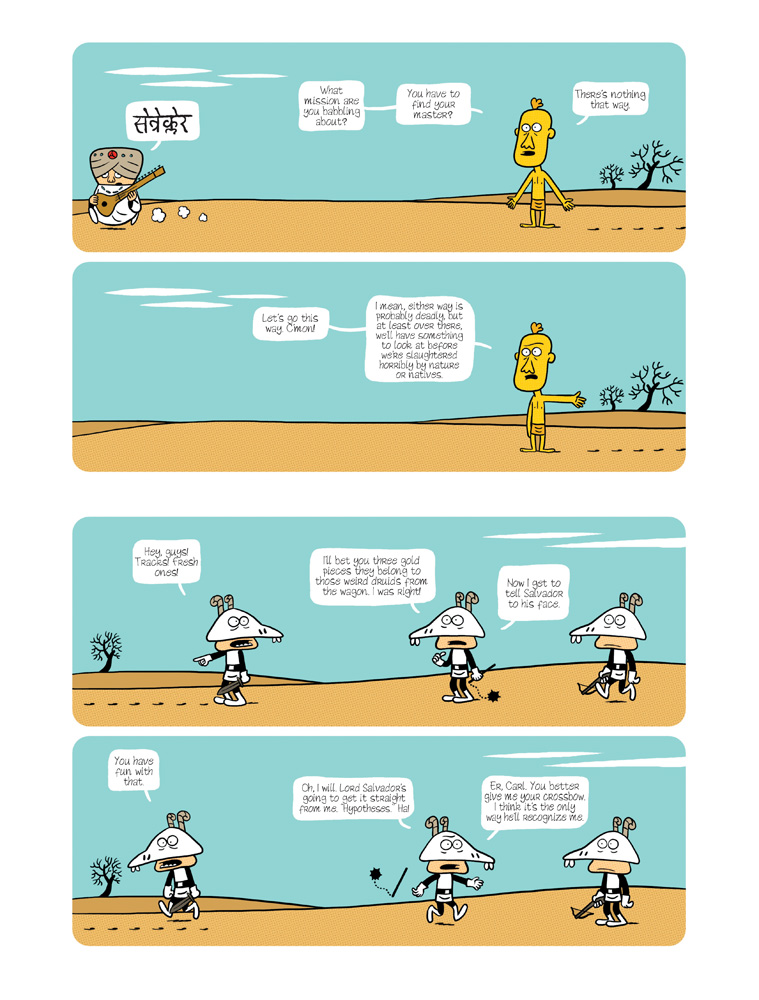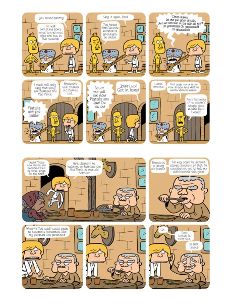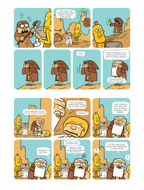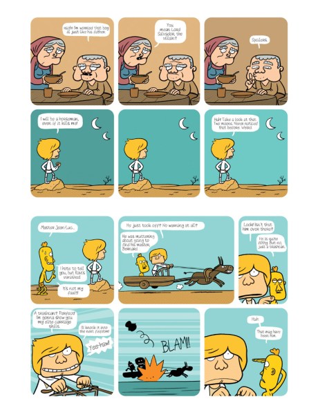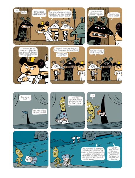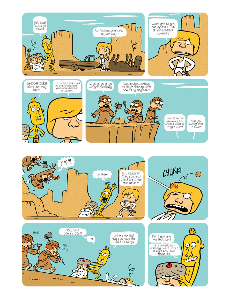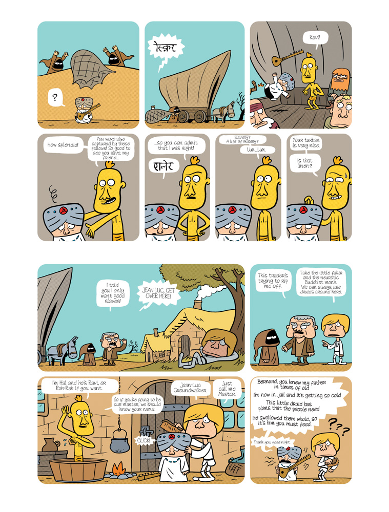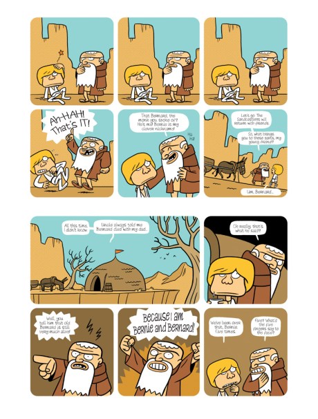 From BOOM! Studios’ new all-ages imprint Kaboom! comes Star Wars parody Space Warped. Most sci-fi parodies are for mature audiences (except Space Balls I guess), so way to go BOOM! Below is a hefty 10 page preview. Love the fantasy interpretations of the characters. Yes, even Princess Leia’s unibrow. Click on the pages to see them bigger, and y’know, actually read the text.