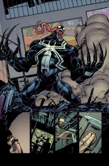 Peter Parker’s old high schoolmate Flash Thompson is the new Venom in this new military/superhero series. Below is a text-free preview of May’s issue.