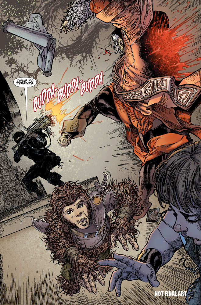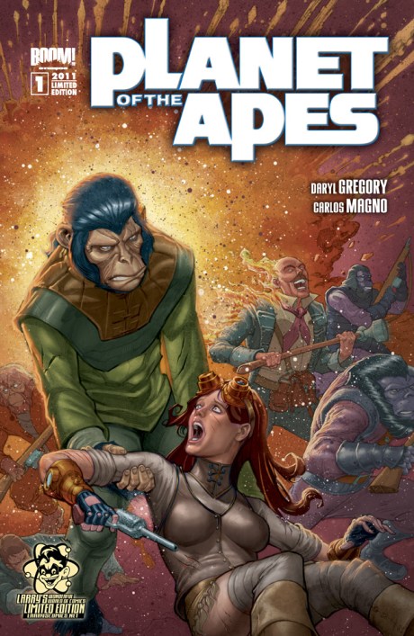 BOOM! Studios brings you a stunning first look at the all-new ongoing PLANET OF THE APES comic series hitting store shelves April 27,2011! It’s a bold new vision of the classic Apes universe written by award-winning sci-fi novelist Daryl Gregory (Dracula: The Company of Monsters, Pandemonium) and drawn by sensational artist Carlos Magno (Green Lantern Corps). So be sure to contact your local comic shop to reserve your copy of PLANET OF THE APES #1 today!