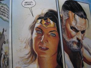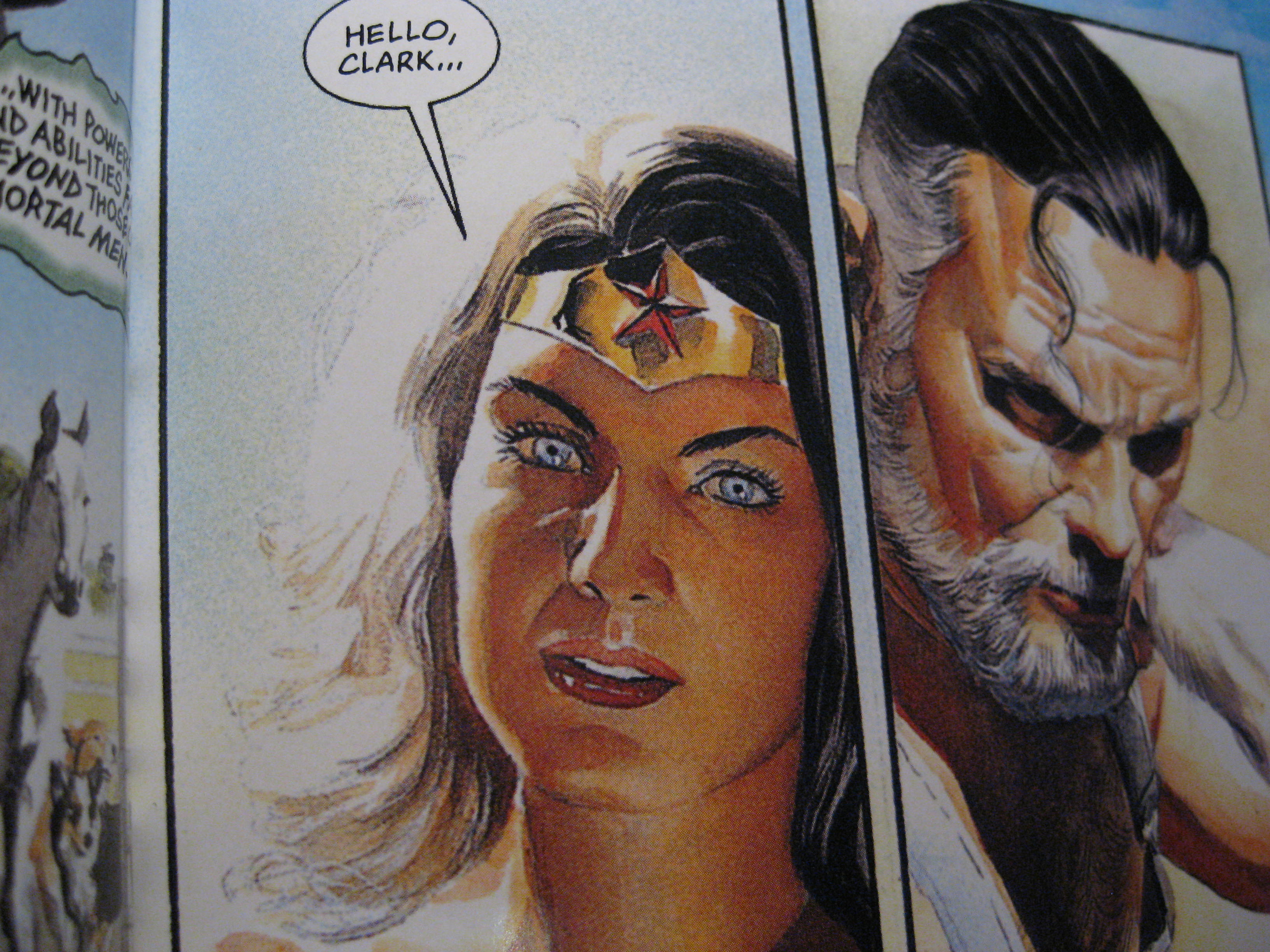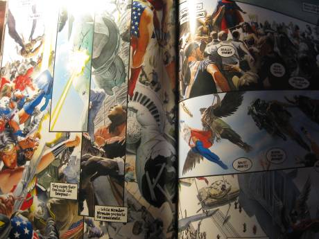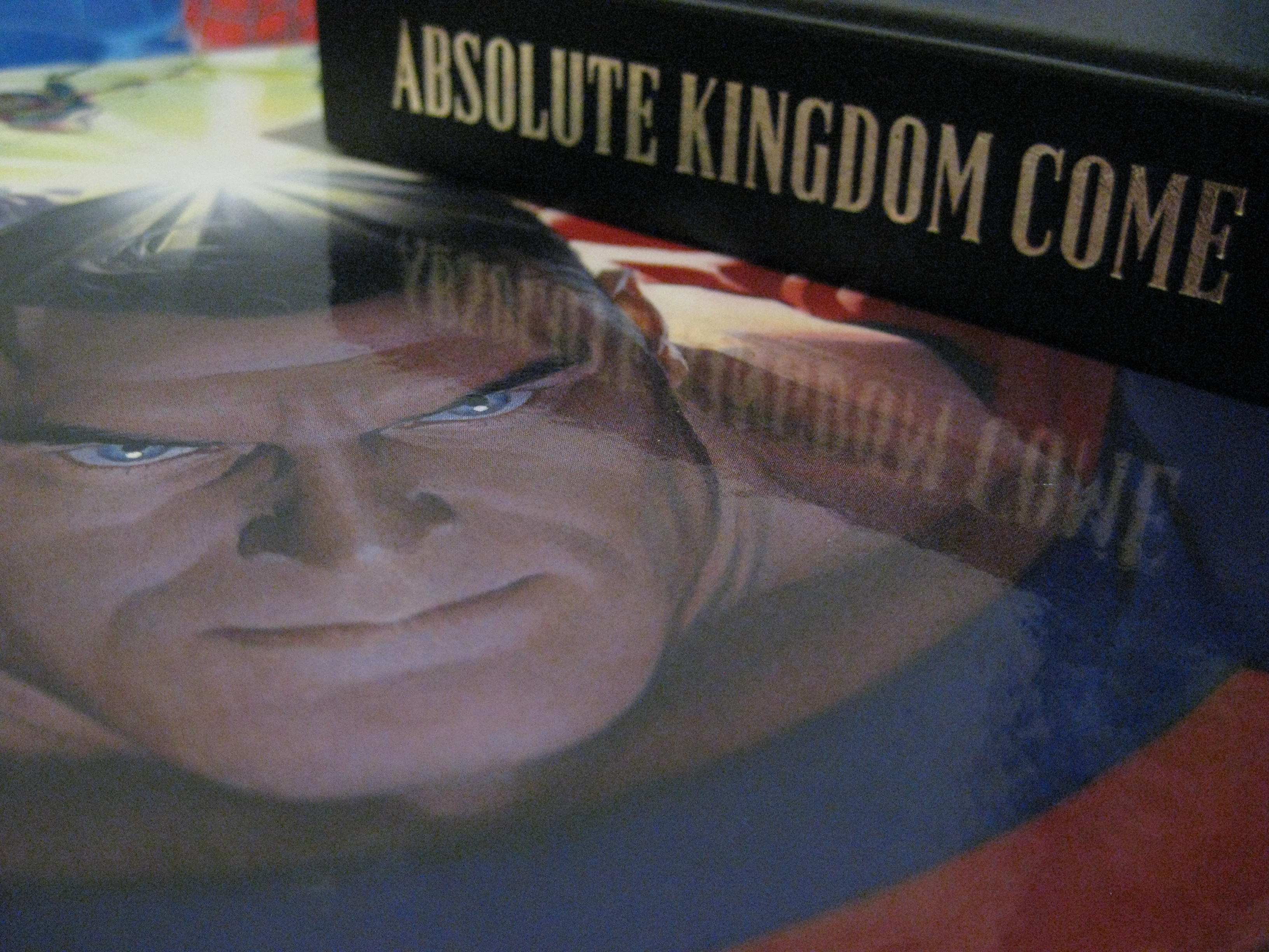 Kingdom Come is a 1996 4 issue mini-series published by DC. Written by Mark Waid with great art by Alex Ross (who hasn’t done much interior work since, just covers) it follows a possible future of the DC Universe. Superman is retired, Batman is broken and a cavalcade of new “heroes” and villains have taken their place, causing death and destruction whenever they fight. Seen through the eyes of preacher Norman McCay, with The Spectre as his guide, it is a love letter to DC’s characters with biblical imagery and questions about heroism. In short, I love it, and since we’re talking about it in this week’s Extra Sequential podcast, I thought I’d use it as an excuse to show a few pages from the hefty, oversized Absolute edition.