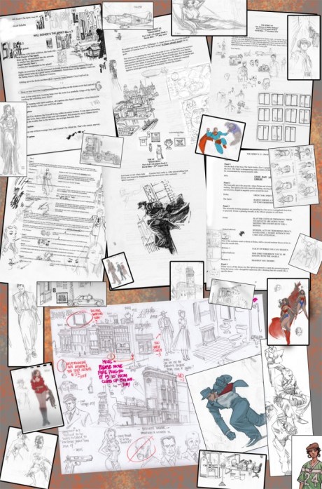 DC’s blog, The Source has a couple of good, new posts spotlighting artists. One is on Moritat and his work on Will Eisner’s The Spirit. Some of his stories sound filled with flights of fancy, but what do I know? Maybe he really did line up at a Japanese temple to see a famed ink brush sensei, and maybe he really does meditate and then speed on his motorcycle to prepare himself. Sounds kinda cool actually. On a related note, go to Imprint Magazine’s post on Eisner’s (and those inspired by him) great masthead designs.