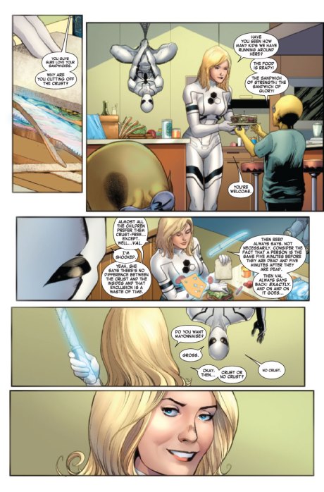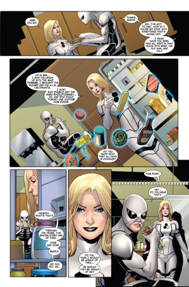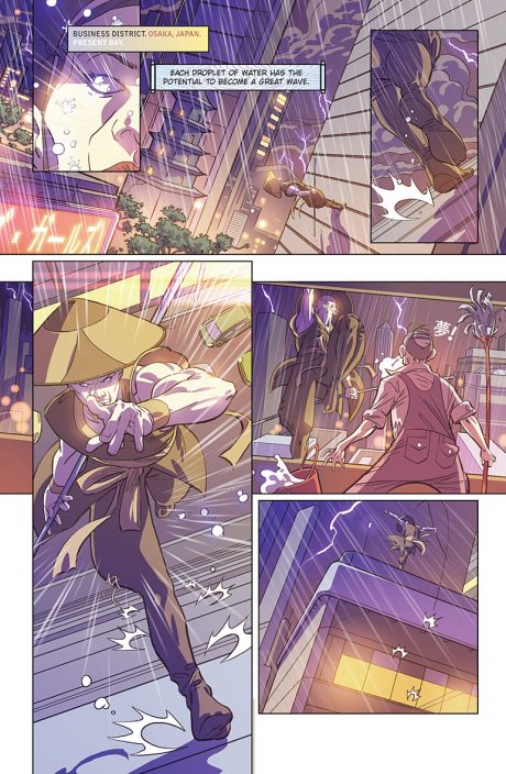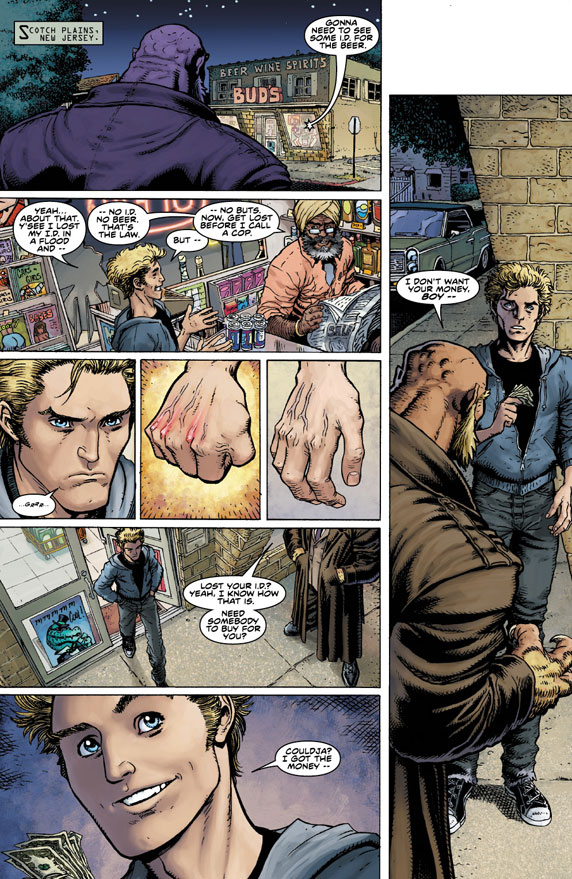 It begins with 3 druggies looking to score some cash for their next hit. It’s Halloween, so they look even freakier. The trio bust in to an elderly man’s place, but he has nothing of value, until Danikka notices a box, and despite the man’s explanation of the terror inside (in what is the most gruesomely effective sequence in these pages) she opens it. There’s a brief fight between David (the guy in the cool skeleton costume, just like the villain in the original Karate Kid!) and Zeke, who shoots the old man, his visiting daughter and David.