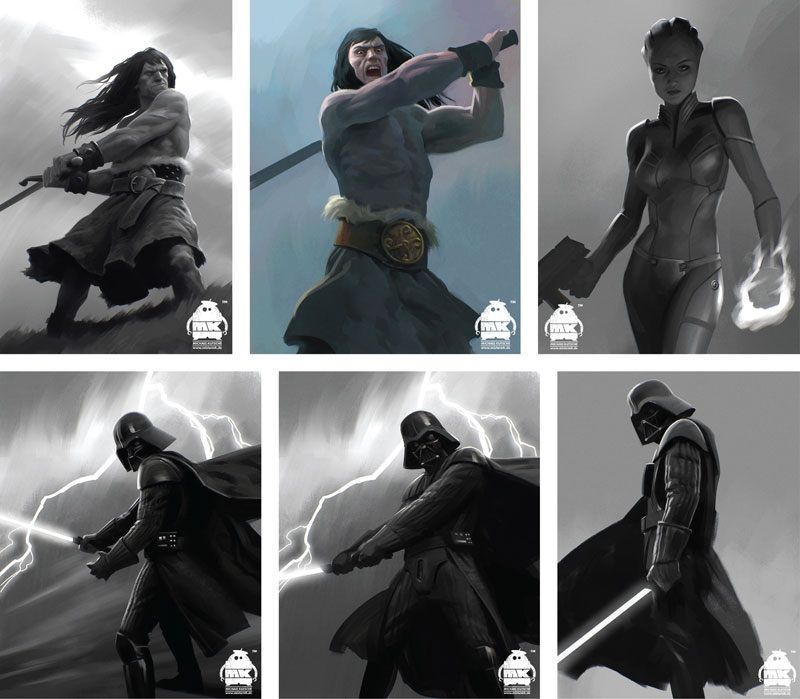 The Dark Horse blog has a nifty post from art director Lia Ribacchi giving us a peek behind the scenes of the rebranding of Dark Horse, specifically using images of Darth Vader, Conan and Liara from the Mass Effect games and comics. See more of the process at the link above.