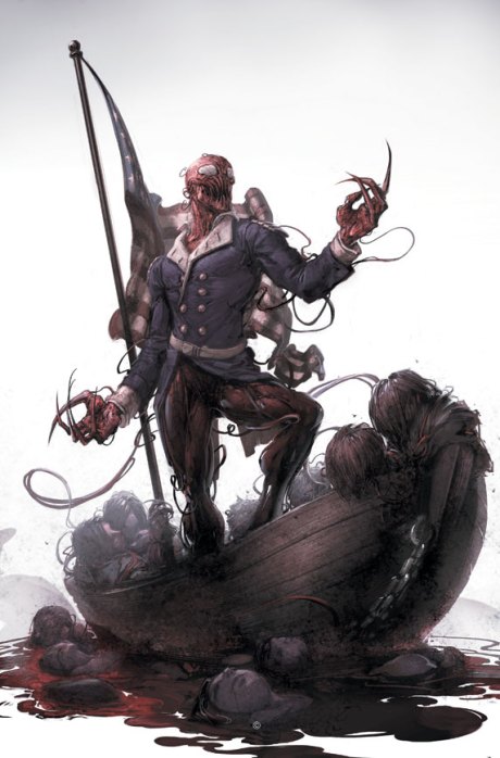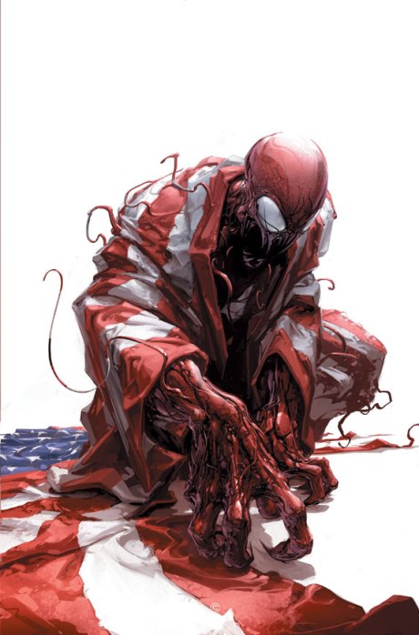 It’ a whole new meaning for “red state” as Carnage’s maniacal reign of terror continues, courtesy of the critically acclaimed creative team of Zeb Wells and Clayton Crain, in Carnage USA #1 (of 5)! With Carnage leaving a wake of bloodshed and lunacy throughout the nation, Spider-Man and the Avengers must go on a brutal hunt to capture Cletus Kasaday before the American heartland falls under his mass-murdering spell.
