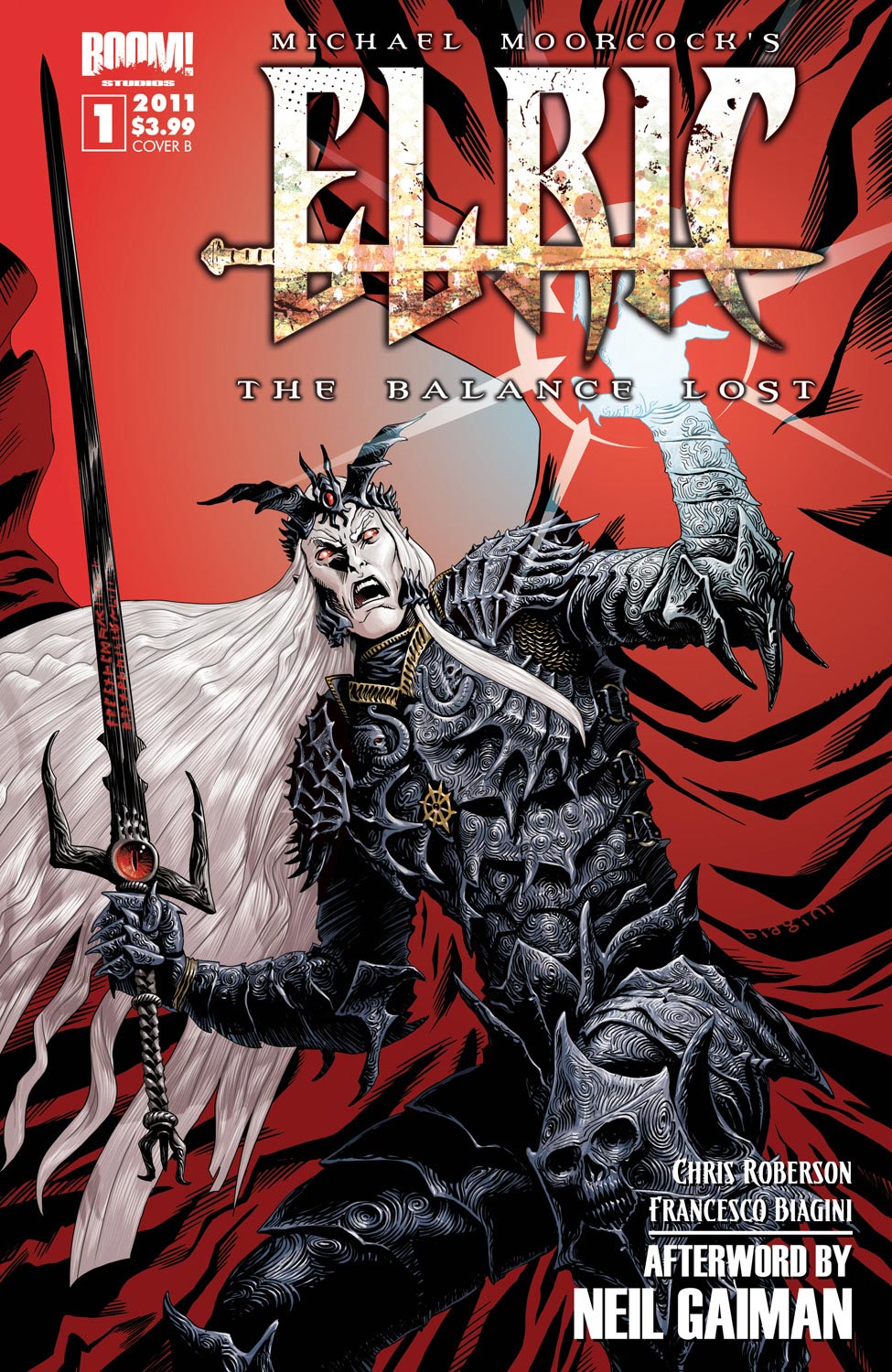 ELRIC: THE BALANCE LOST #1 debuts in print and digitally today, July 6, 2011, and is written by Chris Roberson (iZOMBIE, SUPERMAN) and drawn by Francesco Biagini (DINGO) and includes an afterword by Neil Gaiman. This title ships with A & B covers in a 50/50 split with art by Francesco Mattina and Francesco Biagini respectively, as well as a 1-in-10 incentive cover by Dennis Calero and a 1-in-25 incentive cover by Tim Bradstreet. This premiere issue can be purchased at your local comic shop, through the BOOM! Studios Comics App, Comics by comiXology App and the web atcomics.comixology.com for $3.99. ELRIC: THE BALANCE LOST #1 carries a Diamond Code of MAY110918.