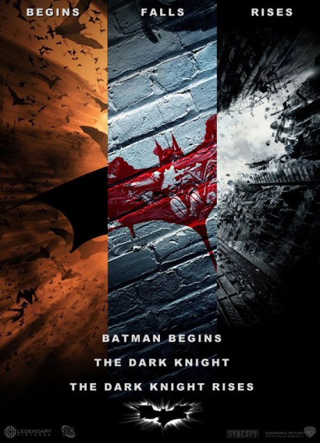 The same story applies to the teaser for next year’s final Batman film, The Dark Knight Rises, and it is a teaser, with not much new footage. Equally as impressive are these two fan made posters which mash up the posters from the entire trilogy.