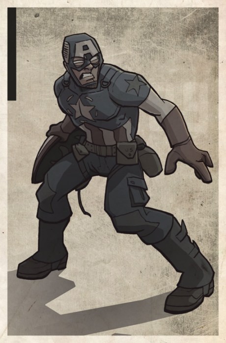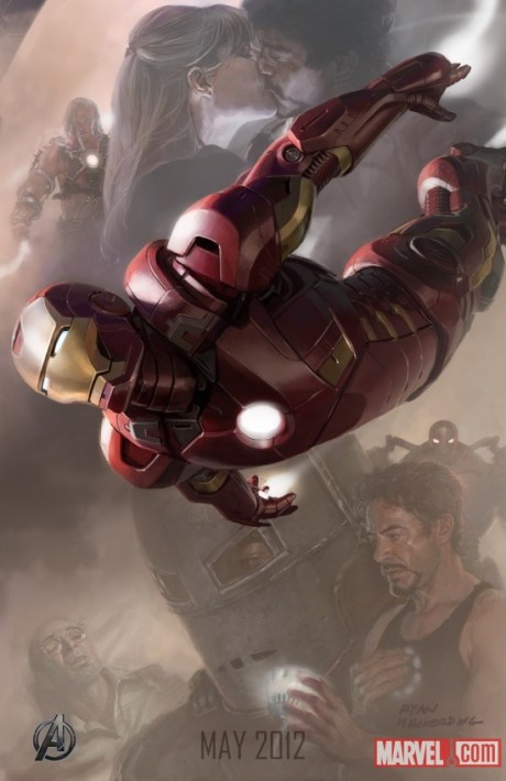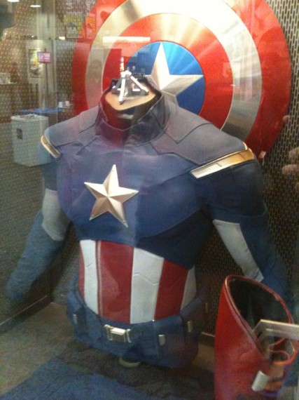 Apart from Captain America’s snazzy costume (the one he’ll wear in next year’s The Avengers film) 4 posters were on display, spotlight Cap, Iron Man, Black Widow and Hawkeye, all sporting slightly tweaked versions inspired by their comic counterparts as seen in The Ultimates.