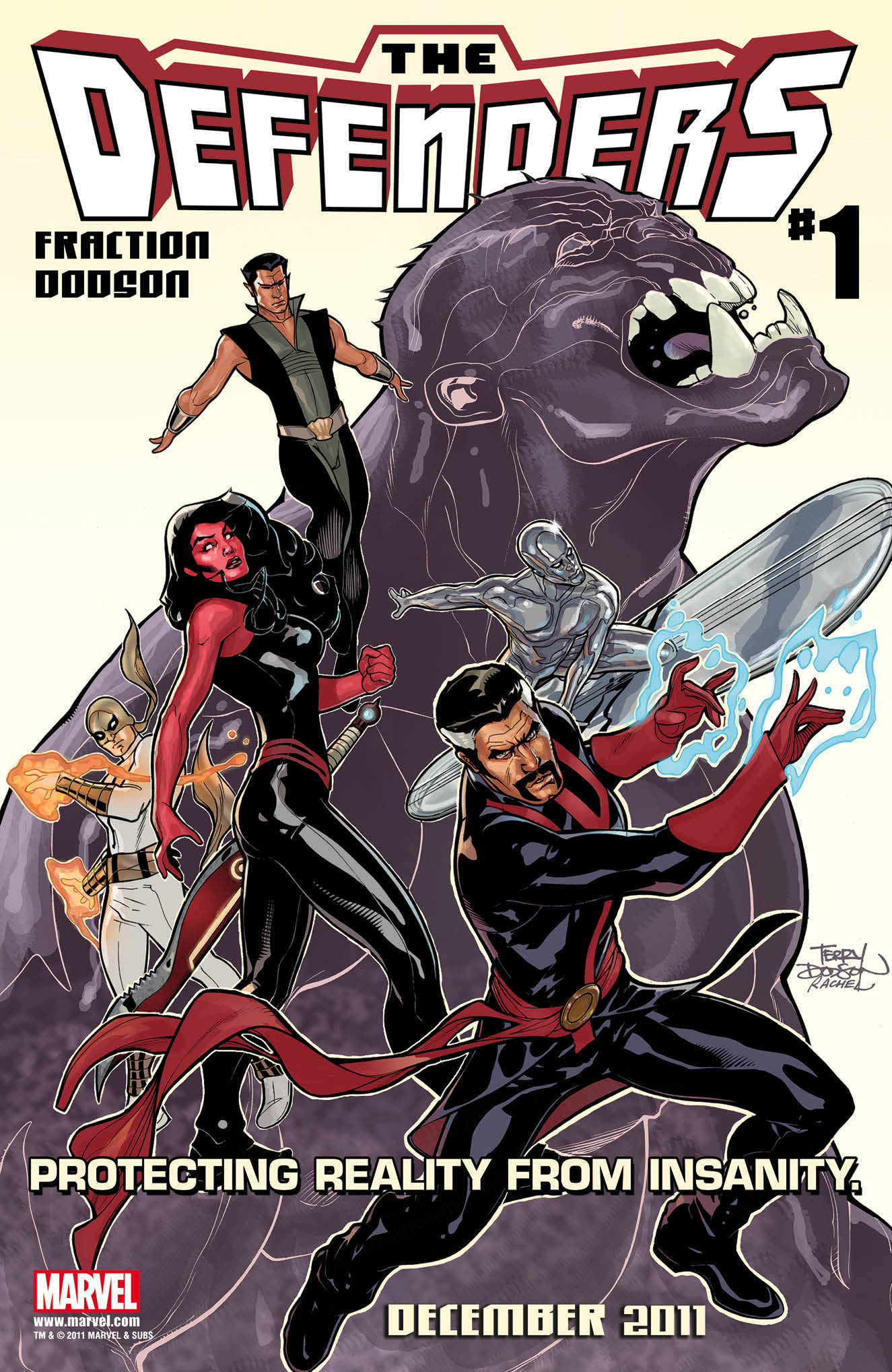 When the impossible is everywhere and the very fabric of reality is threatened by insanity, the world needs more than super heroes…they need Defenders! Enter Defenders #1, from the top-selling creative team of Matt Fraction (Fear Itself, Invincible Iron Man, Mighty Thor) and Terry Dodson (Uncanny X-Men), as Doctor Strange assembles a new team of heroes to face a new kind of threat that will leave readers shocked. Doctor Strange, Iron Fist, Namor, Red She-Hulk, Silver Surfer and more of your favorite Marvel Heroes will band together exploring corners of the Marvel Universe you never knew existed for missions so deadly they have to be kept secret. Once a Defender, always a Defender – no matter the cost or sacrifice.