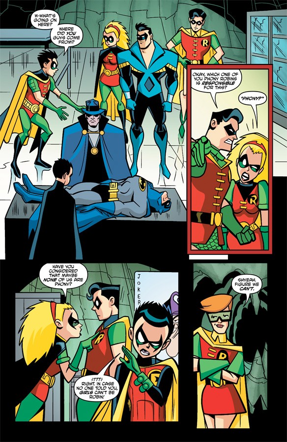 When I first saw this cover and the solicitation text that promised a team-up of all the Robins to save Batman’s life, I knew that I must have it. Chris Sims at Comics Alliance has now shown that I was right. Check out a preview and rundown of the charming all-ages ish right here.