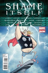 Shame Itself. And now for something completely different. This ish doesn’t takes itself seriously at all, whcih makes it such an enjoyable romp. As an anthology one-shot mocking Marvel’s antics, I found this surprisingly funny. Despite the title, this doesn’t focus on the recent Fear Itself epic that ran throughout Marvel’s titles. Kicking things off with an awesome 5 pager by Victor Varnado and Clayton Henry, it finds various baddies including Galactus, Dormammu and Thanos (“He’s got jewellery!”) all turning up at New York to announce their latest world domination plans and then awkwardly realising that they can’t all rule the world and need some sort of schedule. Elliott Kalan and Dean Haspiel bring us Reed Richards and The Thing’s high school reunion, in which much to “Read’s” (as his name tag suggests) chagrin, Ben Grimm is much more popular than him. A Wy-If, as opposed to Marvel’s alternate universe What If series, by Wyatt Cenac, Kalan and artist Colleen Coover present 5 one page gags that work rather well. There’s a 2 pager prose piece from Michael Kupperman and a piece called “I Hate Peter Parker,” that doesn’t work. Overall, the whole ish does though, but only in the same way DC’s Tiny Titans does – for fanboys who know their stuff. If you’re new to Marvel, you won’t know most of these characters so the jokes won’t work. It’s awesome to see new writers here (a few from the land of TV), all of whom have a clear love of Marvel’s costumed adventurers.