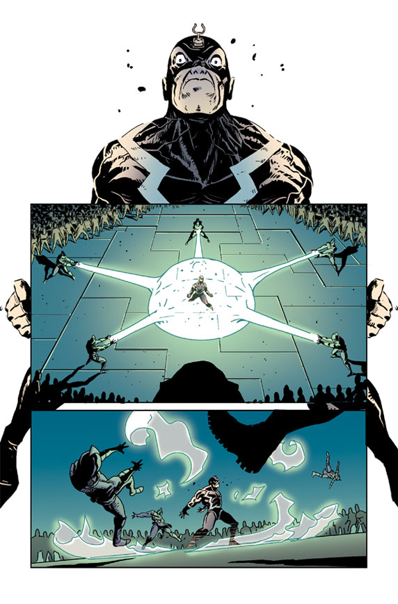 Below is a text-free preview of August’s issue of FF, the monthly series focused on the Fantastic Four. I love the layouts, and Black Bolt’s expression on the last page. Keeping it family focused, here’s a look at writer Jonathan Hickman’s infographic from his stint on the series.