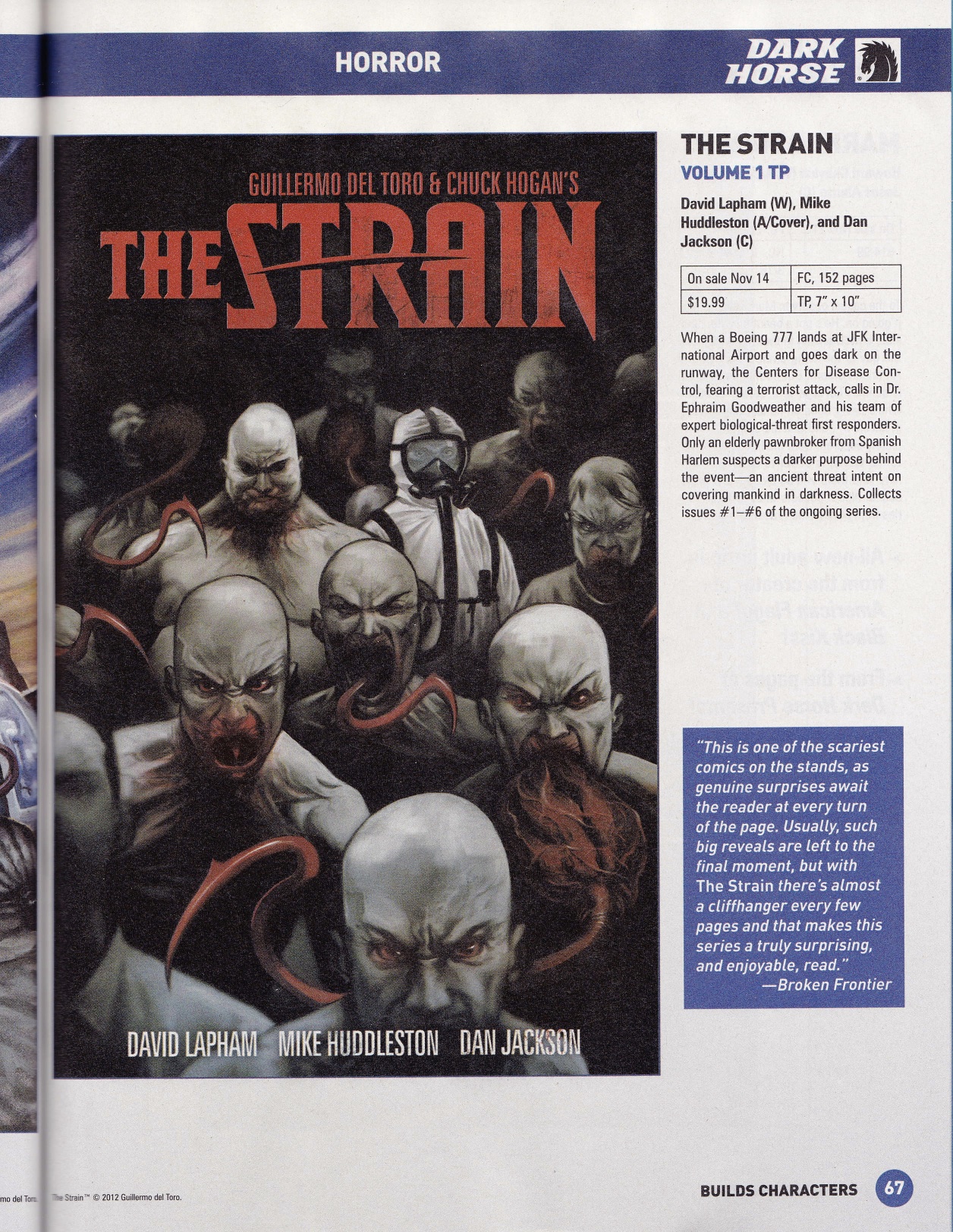 I’ve mentioned this new horror series based on the novels by Guillermo del Toro and Chuck Hogan before, but on page 67 of this month’s Previews catalogue, you’ll see my Broken Frontier quote singing the praises of the series for the first TPB. Cool.