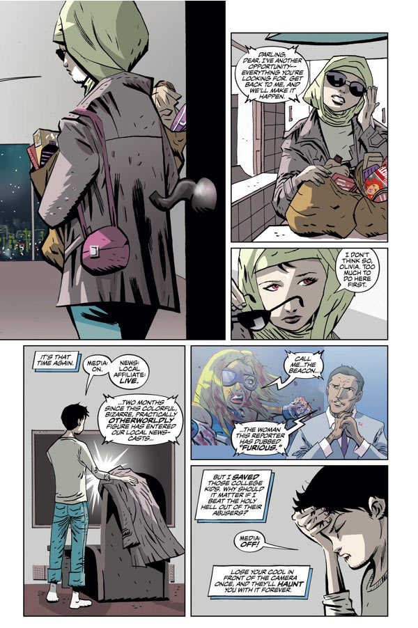 Staring into a fractured mirror of her life, the world’s first superhero, Furious, seeks to atone for her past sins by doling out rage-fueled justice! But the spotlight of our celebrity-obsessed media threatens to undo her noblest efforts and expose her true identity before she can achieve redemption.