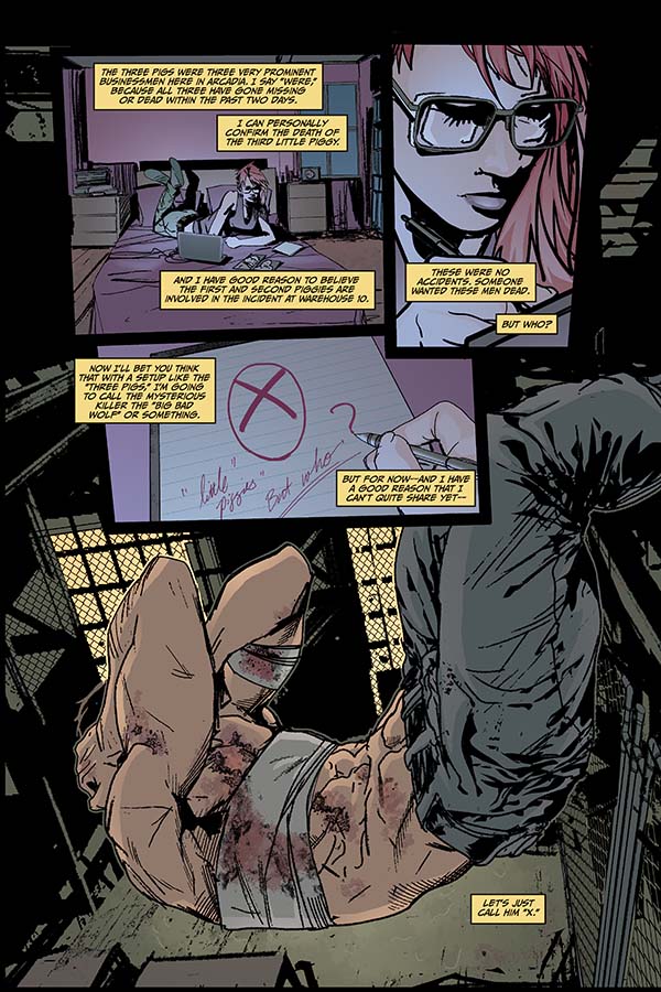 This Trade Paperback, entitled Big Bad, collects the relaunch which began in April 2013, in particular issues #0-4, plus a few sketchbook pages of character designs. Written by Duane Swierczynski (Cable and X-Force, Punisher, for Marvel), with art by Eric Nguyen (Batman: Arkham Unhinged, based on the Arkham series of videogames), this is a good (re) introduction to X and the nasty city he inhabits.