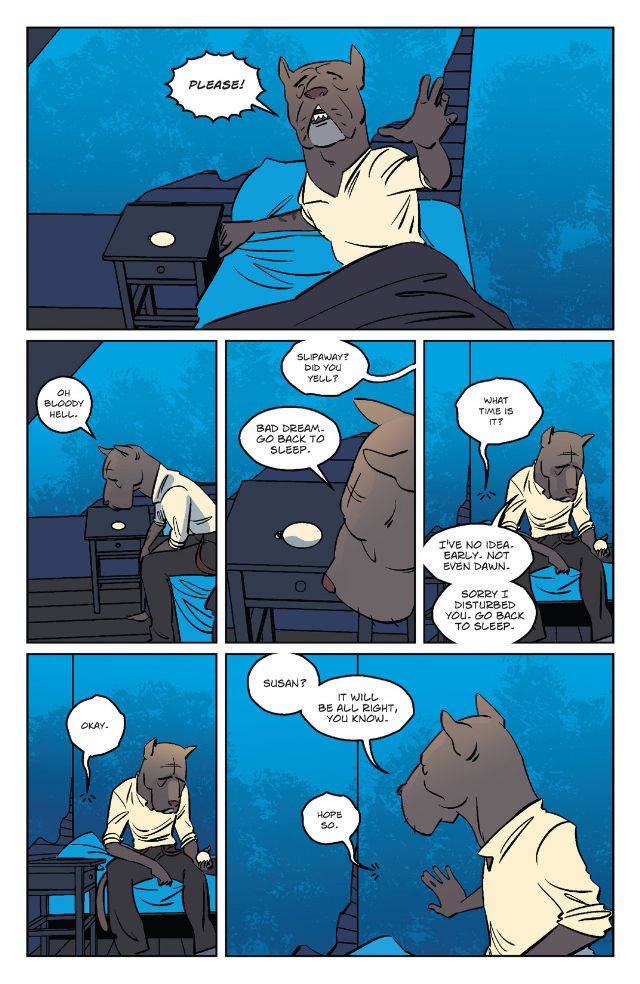 Culbard’s art (more to see here) is clean and the variety and expression with which the characters are given is very impressive. They all have personalities, and combined with Abnett’s wonderful dialogue and tense story, it makes for a tautly constructed mystery amongst a backdrop of talking animals and countryside charm.