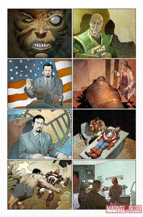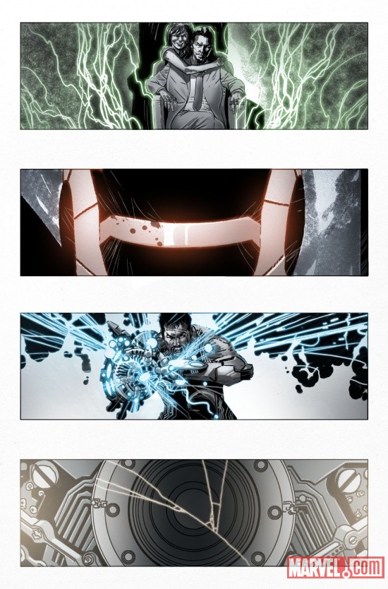 Marvel is pleased to present your first look at Invincible Iron Man #29, from the Eisner Award winning creative team of Matt Fraction and Salvador Larroca! After life-threatening surgery, Pepper Potts lays in recovery as she eagerly awaits the moment when she can suit up in her all-new Rescue armor! Meanwhile, miles away Detroit Steel continues to make Iron Man look like old news by beating him to the punch time and time again. With Iron Man’s reputation slipping away and War Machine shut off from the Pentagon, could it get any worse for the world-saving armored duo?
