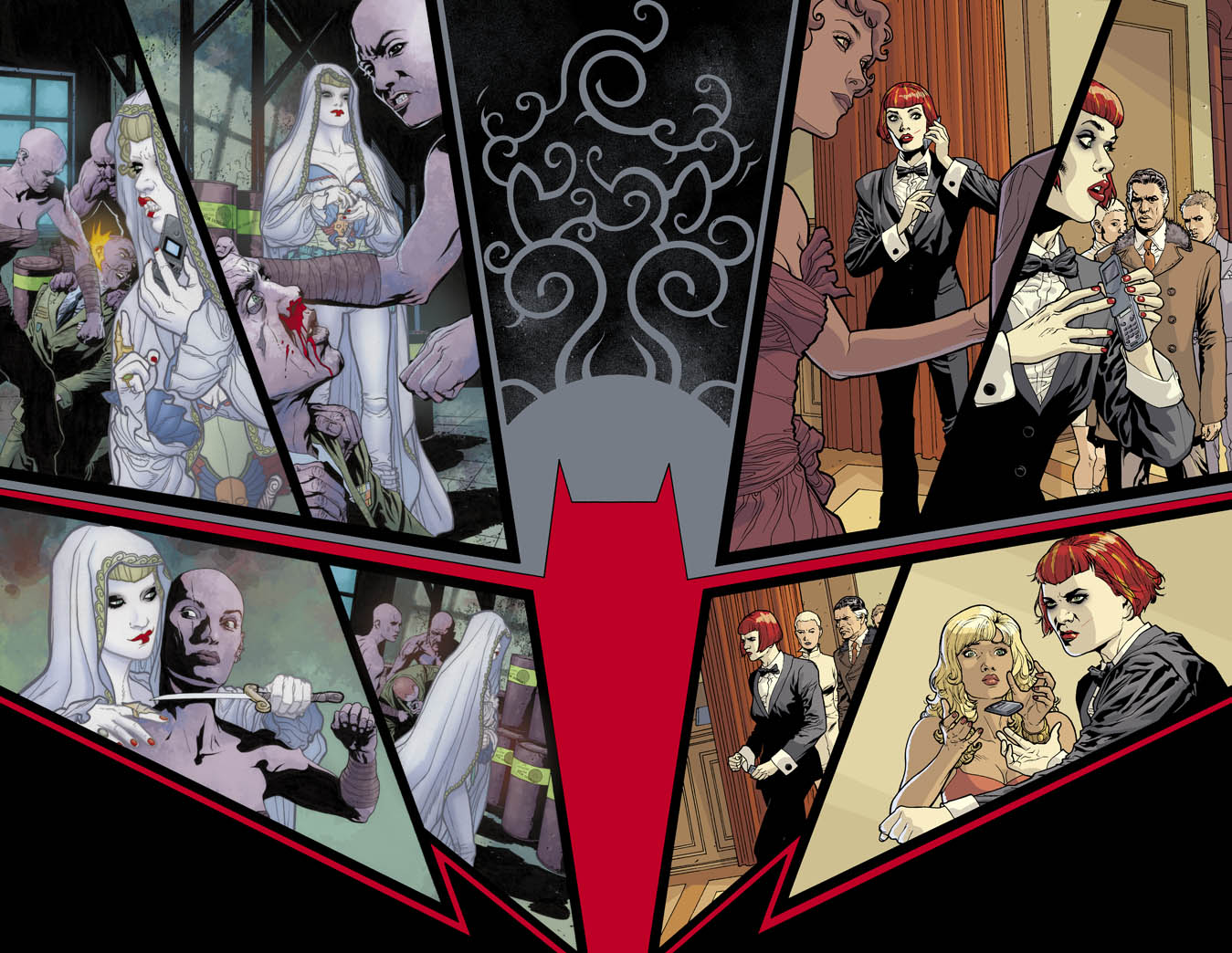 It begins with the leather clad redhead chasing a crim called Rush for information, before a brief encounter with the new Batman, ie, Dick Grayson, who gives her an unnecessary hair care tip. We then see Kathy have a breakup at a cafe before she talks to her stepfather, a Colonel who seems to be her Alfred stand-in. With the visit of pale Alice to Gotham, the new leader of the Religion of Crime and a gun-toting Batwoman staring her down it’s obvious that something odd is being set up. Odd in a good way though. With this new direction, it seems like a Vertigo book in the middle of Gotham. Williams’ fight scenes are beautifully choreographed and he makes the pages his own. When Batwoman kicks butt, wow is the only appropriate response. The dialogue and exposition scenes are designed with more restraint which makes the action scenes pack even more punch.