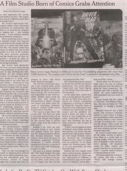 And the Comic-Con news keeps on coming, almost a week after it finished. This is impressive news though. Radical Publishing really are the new kids on the comics block, but have already made a solid name for themselves thanks to some bold painterly interior art, experienced creators and high concept series. They also know how to get the attention of non-comics media, which is something every publisher could learn from. Thanks to their connections in film and music, due mainly to founder Barry Levine, people outside of the often insular world of funnybooks are sitting up and taking notice, and I have to applaud them for that. Official press release below regarding a Con party.