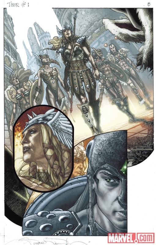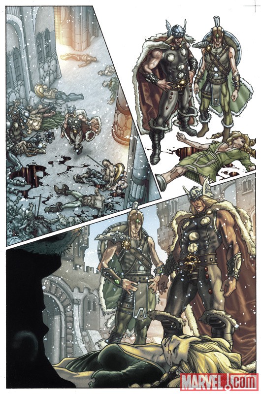 “It’s a really exciting time to be working on Thor. A lot of things that have been developing over the last few months are about to come to fruition in a big way—and in a way that’s going to affect not only all of Asgard, but all of the Marvel U,” said Marvel Editor Charlie Beckerman. “With the release of Marvel Studios’ Thor this May, we wanted to be sure that we pulled out all the big guns. And I’m talking talent—Matt, Olivier, Mark and Laura—and I’m talking characters: I can’t say exactly who’s going to show up, but I will say that it will knock your socks clear off.”