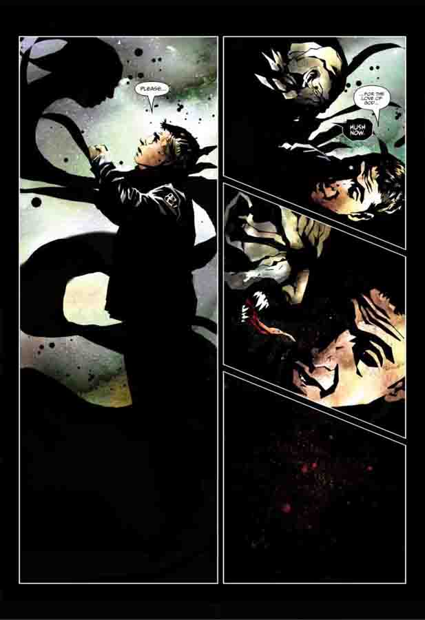 The vampire creatures are a great work of design. Not resembling the typical neck biters from pop culture, Timson gives the ghouls more of a zombie feel, with a touch of Venom thrown in for good measure. Their blank eyes, shadow like tendrils and scorched skin make for a creepy visual combo. Timson is skilled in every area of art that the comic book page requires. The subtle earthen colours of the opener to the surveillance footage shown to the military to Dailey’s hallucinations that are suitably ethereal. He shows he has the mad skills needed for this mad tale. With Stjepan Sejic and now Matt Timson, Top Cow should give their talent scouts a hearty pat on the back.