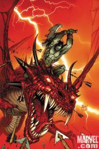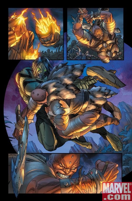 They are well worth a read if you want to see what the Hulk is up to besides pining for Betty and running and growling, as seen in the recent film. Writer Greg Pak has had a lot to do with The Incredible Hulk series (now The Incredible Hercules) and WWH, and is primed to tell the tale of Hulk’s barbaric offspring and his destiny in a primitive, war loving land. Artist Ron Garney does a great job with the pencils as always, as you can see from these preview pages.