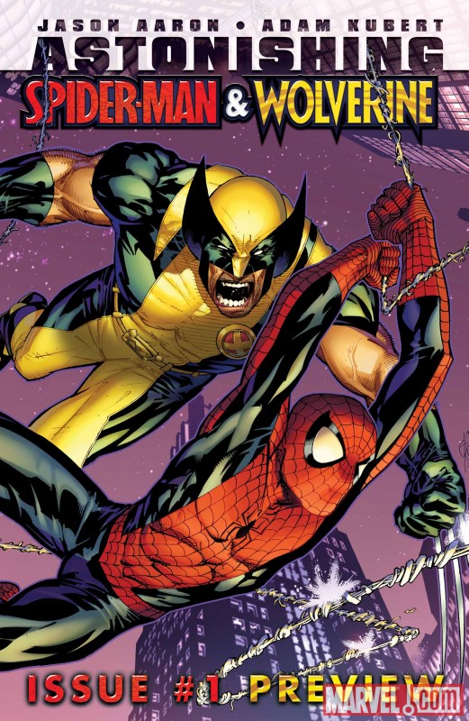 Marvel is proud to unveil your first look at the hotly-anticipated Astonishing Spider-Man/Wolverine #1, from two of today’s most acclaimed talents—Jason Aaron and Adam Kubert ! Spider-Man and Wolverine come together in their first major series ever, as they journey to the edges of a Marvel Universe in a new series that will dramatically affect both characters! Perfect for fans old and new alike, no one can afford to miss the senses-shattering Astonishing Spider-Man/Wolverine #1!